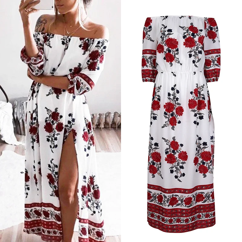 where can We purchase 2017 Newest Women Summer Sexy Off-shoulder Boho Long Maxi Beach White Dress Floral Ladies Casual Party Cocktail Clubwear Dresses
